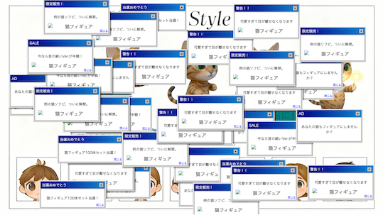 警告:非常にうっとうしい画面になります。心して開いてください。などと嬉しそうにHTMLファイルを書き上げちゃうじゃないか。→「広告地獄」