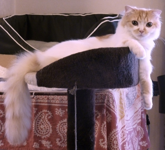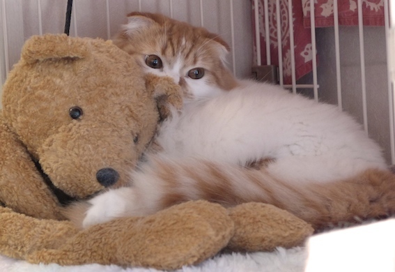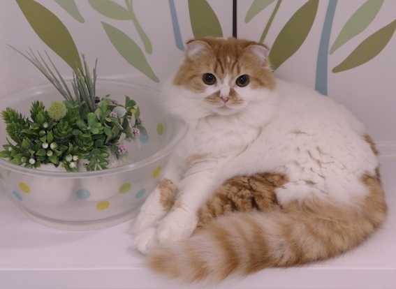 スコのDNAとしてはおデンが代々チャンピオン猫同士の家系です。見た目は”平民”のドンの方がスコらしいですよね。ダンゴ君も立ち耳のスコです。骨太で脚や胴が太い体型なのは共通してます。