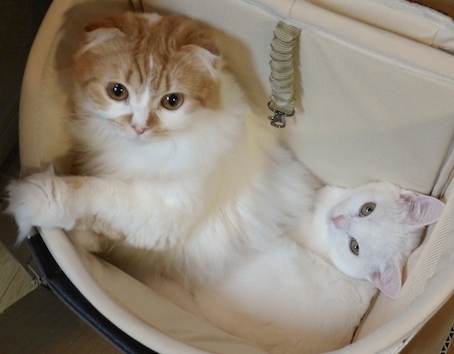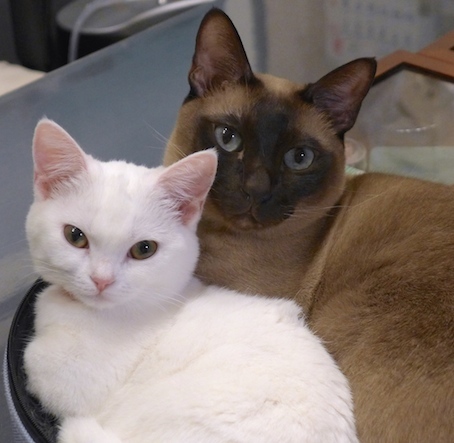バンちゃんも社交性?猫社会に順応。寄り添う姿は兄弟猫みたいです。