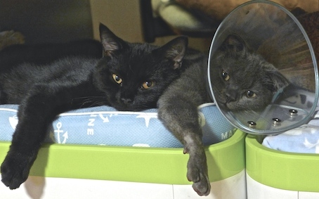 ダンゴ君は手術後すぐにコバンとプロレスしていました。疲れて二人で一休みしています。