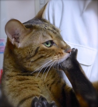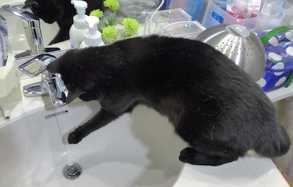 バンちゃん、洗面所の水?流れる水が大好きみたいですね。