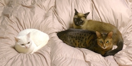 昼間の猫達も掃除機との追いかけっこ・ブロレス大会・お料理の見学・ゴミまとめのお手伝い・お布団乾かしのフカフカ度チェックなど、毎日予定がいっぱいです。