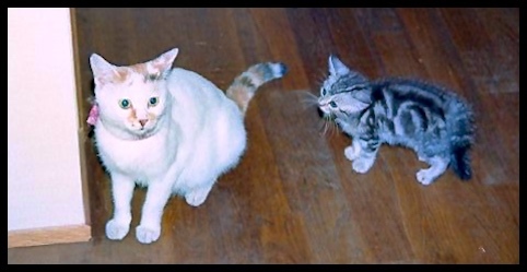 祖母の家にいた大きなオス猫は、目の前の港に停泊していたヨットから、2匹のメスを誘って連れて来ました。ヨットの人が、猫の居ないのに気付いたかどうかは分かりません。数日後に出航してしまい、残された猫達はずっと祖母の家で暮らしました。このメス達は食事の時間になると、友達のノラも呼んで来てみんなで一緒に食べていましたよ。