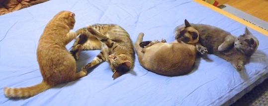 ドンごろーがいつから我が家のボス猫になったのかというと、最初からです。人間なら幼稚園児くらいの頃にうちに来て、すでに高校生くらいだったゴンゴンとガンちゃんに「今日からオラがボス!」と宣言しました。(アホですね)
