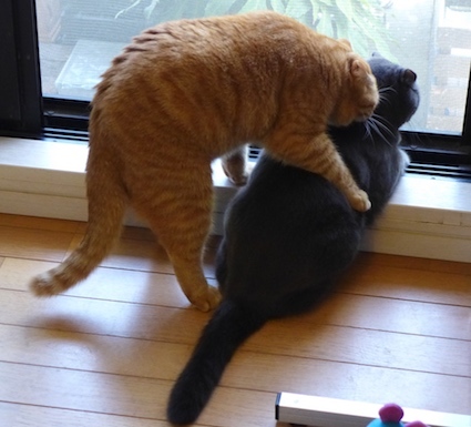 お気に入りの場所に誰かいたら“マウンティング”で自分の優位を知らせます。