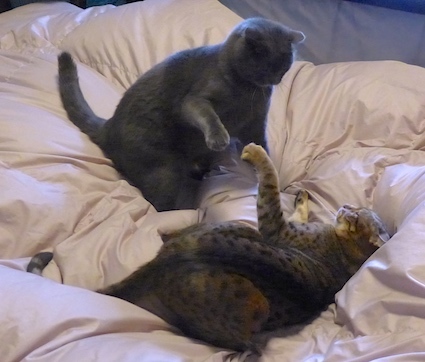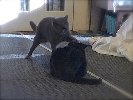 お屋形様のドンちゃんは、毛繕い?余裕ありいい感じですが・・・