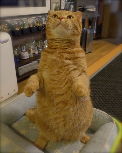 せがんでいるドンちゃん、小生ブログでメダル&花束を持った画像ですね。