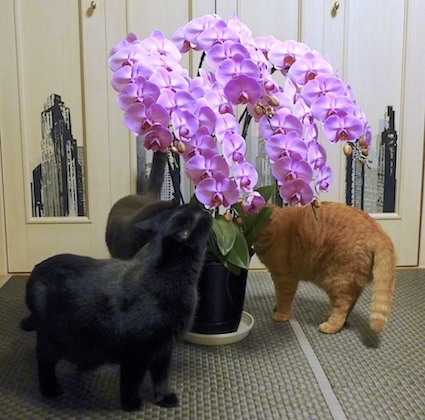 胡蝶蘭とバンちゃん、意外に絵になるツーショットです。