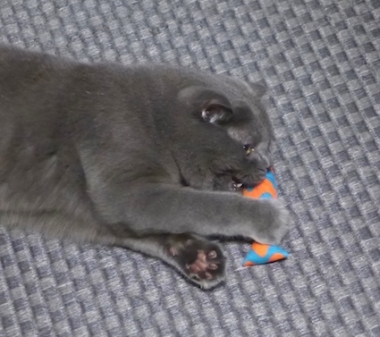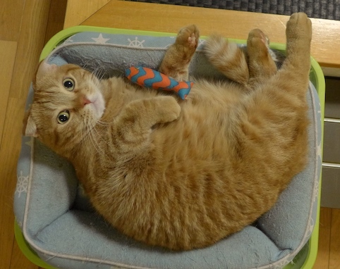 良かったですねダンゴ君。おデン様のおかげでおもちゃを取り戻せて、夢中で遊んでいます。