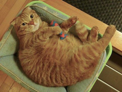 なんでも真っ先に見たいドンごろー。宅配便が来たので、ママに箱の中身を出してくれるようせがんでいます。「見せてくで〜。オラに見せてくでよ〜!」