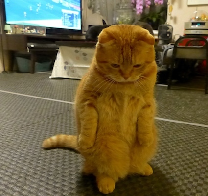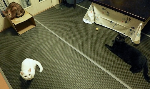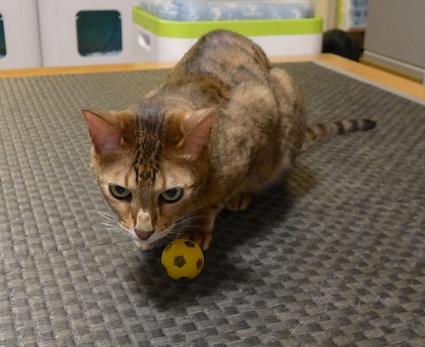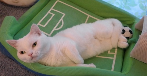 連日夜中までのW杯観戦で、くたびれ気味のぶんぶん家。「アタチは寝てる間もボールはちゃんとキープしてるもん」