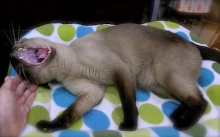 ボンにゃんのゴォーール!!はアクビじゃなくて私に抑え込まれて怒ってる顔なんですよ😾なんだか可愛いですよね😁