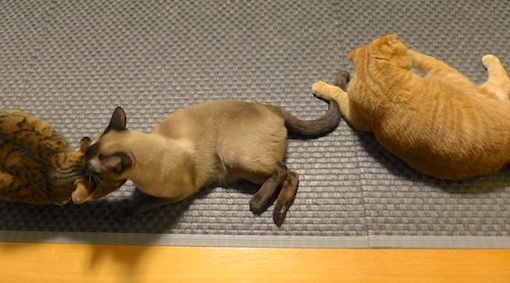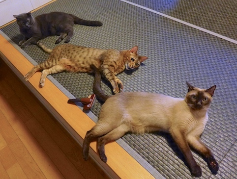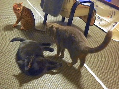 多頭飼いの猫達は、水飲み場など何でも順番を守るのがルールです。ちゃんと列を作って待つのです。