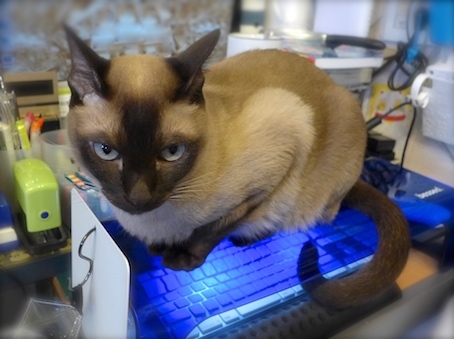 PC前に移動してもすぐさまゴンが膝乗りします。「オカン。オレも手伝うよん」「お手伝いいらないから」