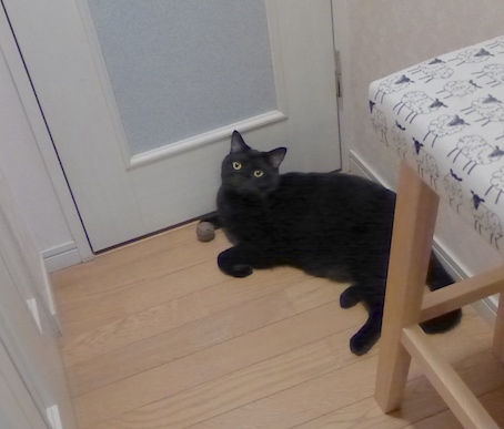 そしてまた横になろうとすると別の添い猫もやって来ました。「オラが枕元で見ててやるずら」「いいのいいの。一人で寝られるのよ」「遠慮しなくてもオラが付いてるだよ〜」ドンが側にいるとイビキがうるさくて眠れないのですけどねー。やれやれ。