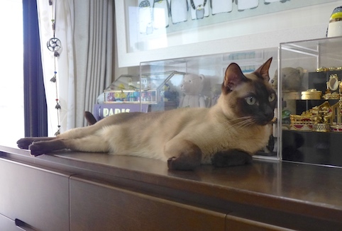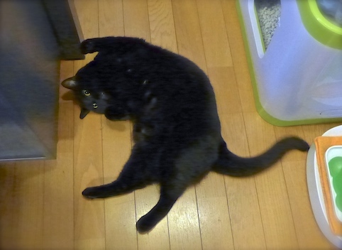 コバンは何故か床の真ん中で“猫じゃ猫じゃ”を踊っています。きっと夏祭りの練習ですね。