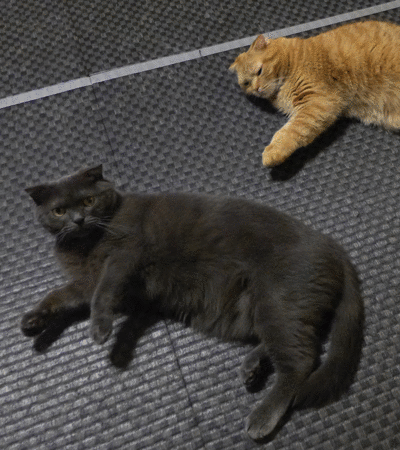 「拙者も行きます!」ぐるグルグルッ! 真っ黒だとよく分からないわねぇ。