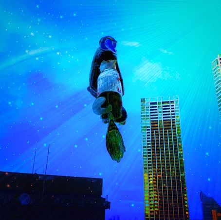 「ハロウィンに向けての試験飛行でござる」「調子はまずまずでござるよ」ママがベランダ掃くホウキが見当たらないって言ってたわよ。「拙者ホウキが無いと困るのでござるよ」