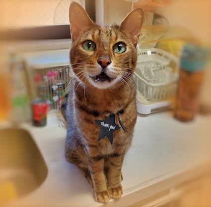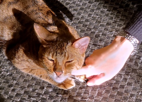 このお客様(ごま大福@まろさん)は猫じゃらしを持参してくれました。ゴンゴンもダンゴ君も大喜びです。