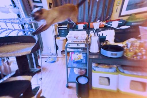 一方で興奮しすぎたガンちゃんは、すごい速さで部屋を飛び回っていました。