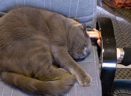 遊び疲れて“客用椅子”を占拠しているダンゴ君。撫でてもらって安心して寝ちゃいます。(この時の様子を描いたイラストが可愛いんですよ)