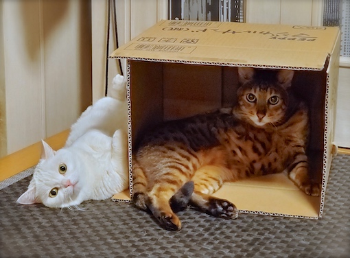 ママは「おまいらの妨害には負けんからな〜」などと呟きながら、意地になってブログを書いていますが、猫達は今日ものどかです。
