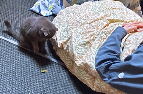 「わらわへのもてなしが増えたのは良いことじゃ」「前はめったに貢物を出さなかったからのぅ」おデン様 パパのチーズ取らないのよ。