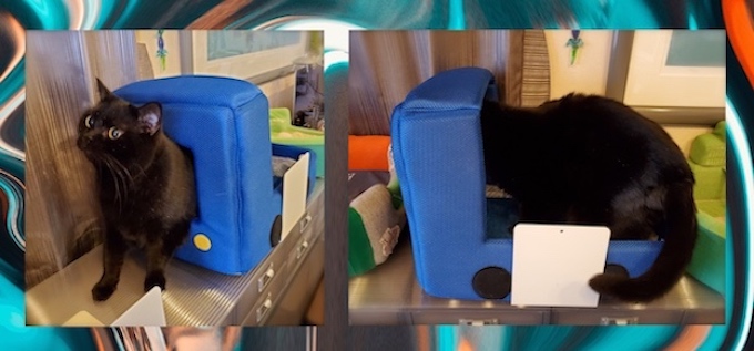 電車型、屋根付きで落ち着きますね。ボンにゃんにあっている感じです。