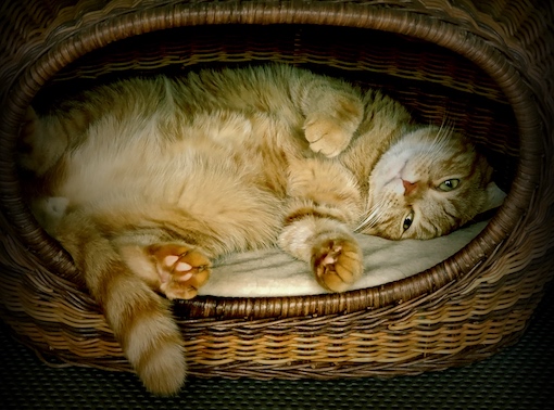 後脚を抱えた「チラ見の形」から、お手手を伸ばした「招き猫の形」へ、しっかりとキメました。