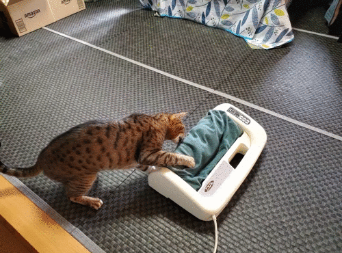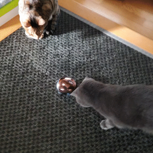 部屋の隅で使ってたのを真ん中に置いたら途端に関心持ちました😺今まで動いてるのに気付いてなかったんでしょうか!?😅慣れたら飽きるのかもしれませんね🙂
