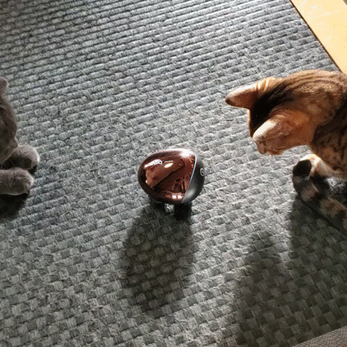 ヘッドマッサージャーを試しに置いてみたら😄不規則に歩き回るので猫の注意を引きました😺コレは生き物に見えて面白いですよね🤣