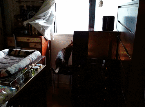 ボンにゃんは物見高い子なので怖くてもそーっと覗きたがります🐱