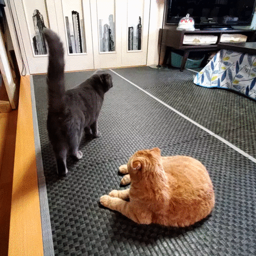 猫達(ゴン以外)知らない人は一応警戒します😅ドンも緊張してますね😾