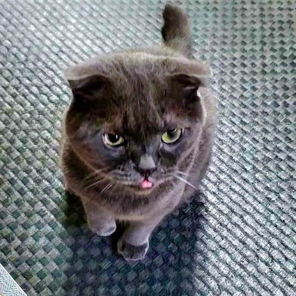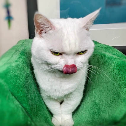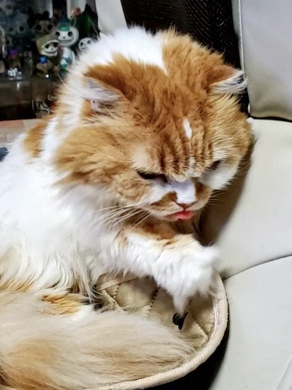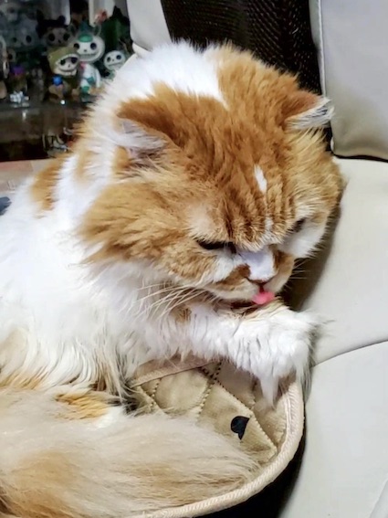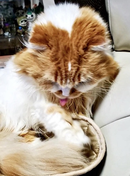 ボンにゃん、目つき悪‥っ? あ、舌が届いてる! 出来るようになるもんなんですね。