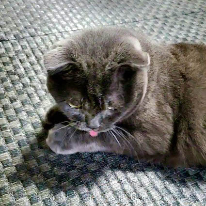おデン様は毛繕いの途中で舌出しのままひと休みでしょう😁