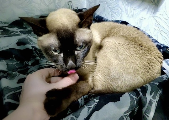 舌を触らせてくれるガンちゃん、凄いニャンズです。