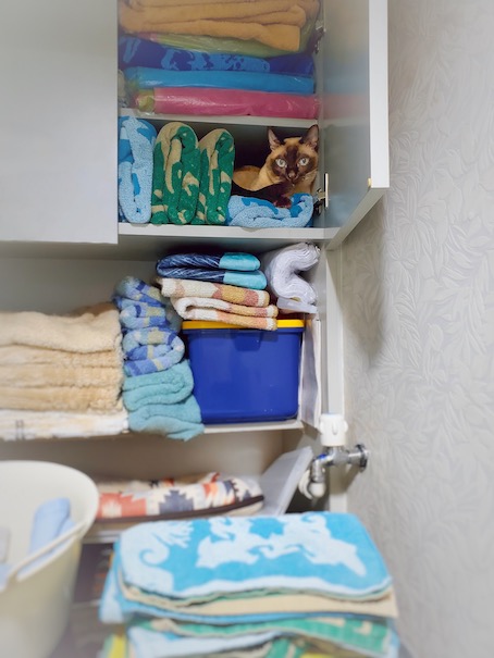 ガンちゃんのおかげでタオルがなかなかしまえません😅