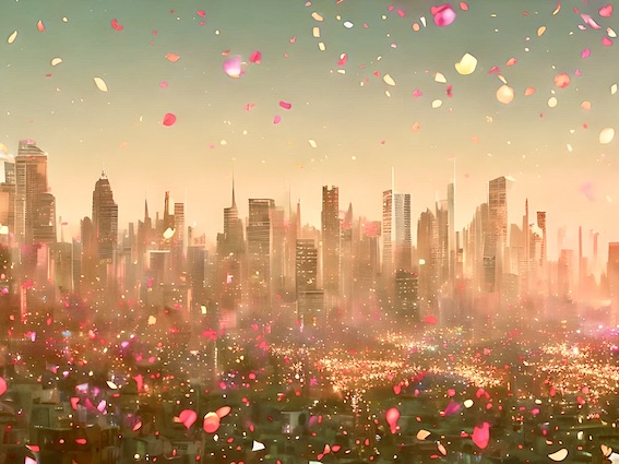 しかも、ビルの高層群画像、とても綺麗で幻想的で素敵です。