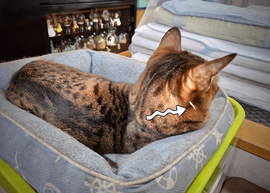 うちのタイは両耳の裏側にでっかい毛玉付けてます。