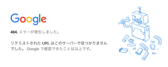 これは皆さんおなじみ?の、404(ページが見つかりません)表示です。壊れたロボットが哀れですね(壊れるなよー)