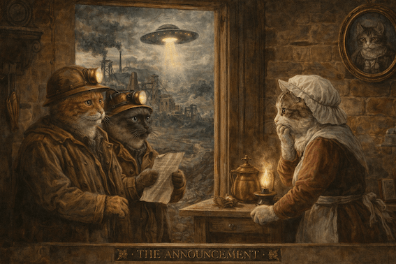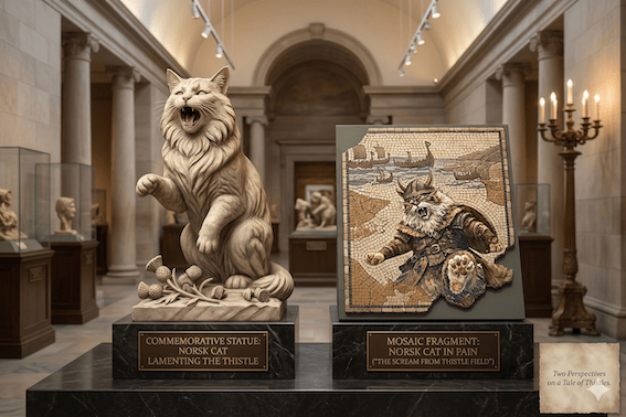 “MOSAIC FRAGMENT: NORSK CAT IN PAIN (‘THE SCREAM FROM THISTLE FIELD'” (モザイク画の断片:苦悶するノルスク猫 別名『アザミ野の叫び』)