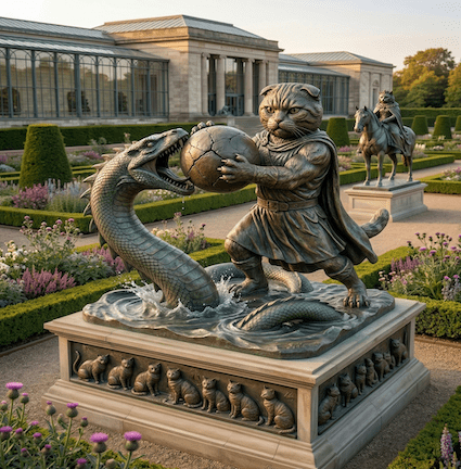 “COMMEMORATIVE STATUE: NORSK CAT LAMENTING THE THISTLE” (記念彫像:アザミを嘆くノルスク猫)