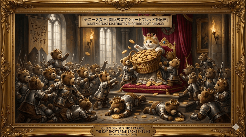 『QUEEN DENISE’S FIRST PARADE: THE DAY SHORTBREAD BROKE THE LINE』 (デニース女王、初の閲兵:ショートブレッドが列を崩した日)