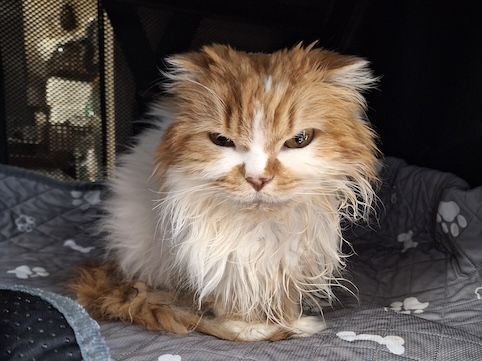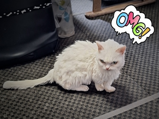 結局この日シャンプーされたのは、ボンにゃんでした。「酷い目にあったわっ」「怖かったわっ」「寒いのになんでよっ」怒っています。