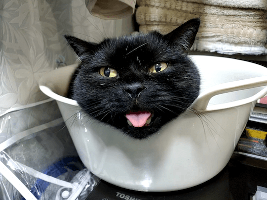 これは猫玉ではなくリアルコバンです。黒猫にはピントが合いません。肉眼でも、何やら黒い丸い物体があるようにしか見えないです。