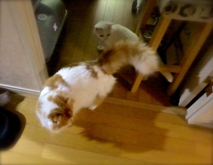 「家のニンゲンに見られたらどうするのだ!」「グルル殿下こそ目が宇宙仕様に戻っちゃってますよ」