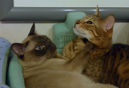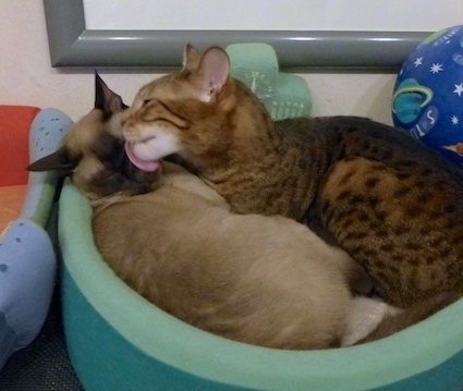 「オラも一緒に寝るずら〜」「わしに寄るんじゃねーだ! 地球猫めっ!」