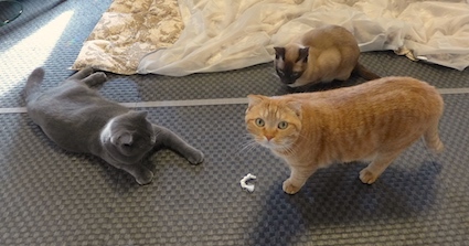ウチに着くとゴンゴンがお出迎えしてくれました。「オカンおかえりー」「オレを置いてどこ行ってたんだよぉ」「お迎えありがと」「留守中悪いコトしてなかったでしょうね?」「えっと⋯」