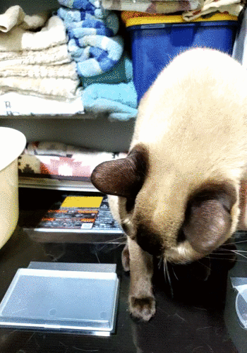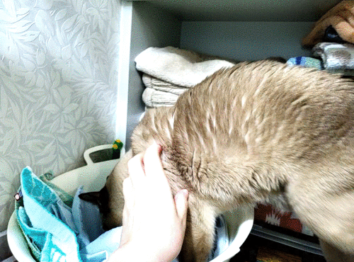タライに逃げ込んで、ヤメてくれるようお願いしています。細い体に細い被毛で、刺激が強すぎるのでしょうか。