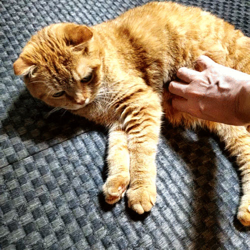 おデン様も、お腹モフモフはお嫌いです。顎の下や頭の後ろをモフるよう要求なさり、気に入ると微笑んで下さいます。